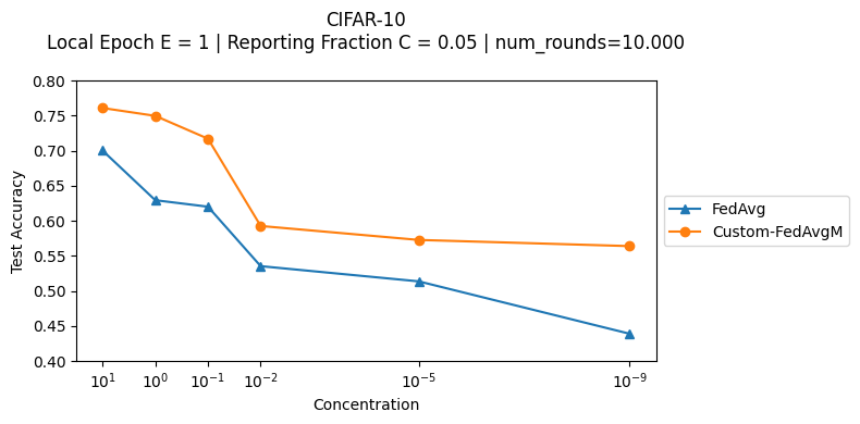 noniid.concentration=0.001,0.01,0.1,1,10,100 strategy=custom-fedavgm,fedavg \