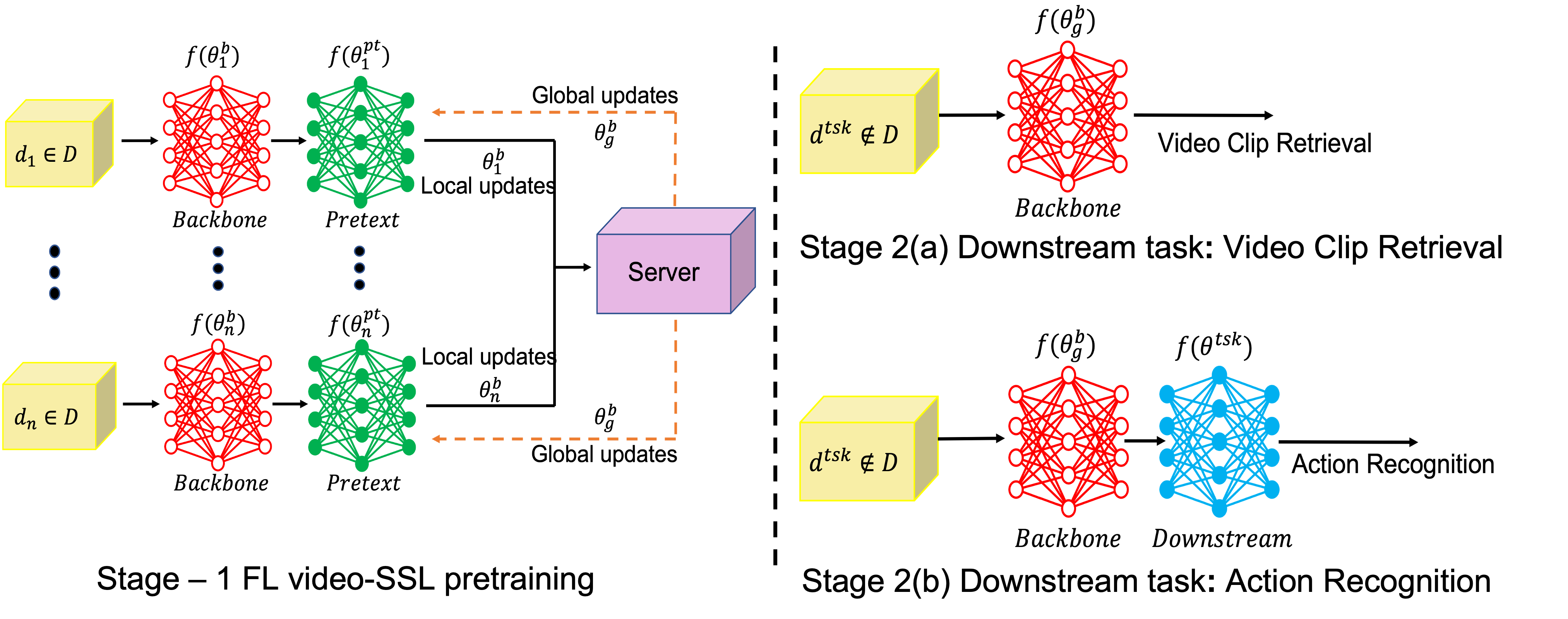 We first pre-train the R3D-18 model using the Catch-the-Patch (CtP paper) SSL technique in FL settings. The details of the CtP SSL technique can be found at